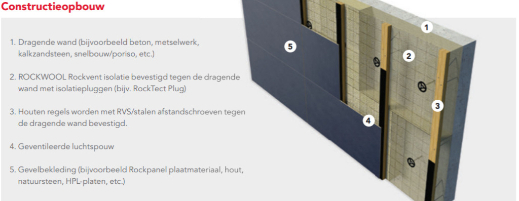 Specifiek voor geventileerde gevels ontwikkelde Rockwool een nieuwe type isolatie “Rockvent”. Dit type rotswolisolatie zijn extra stevige en waterwerende isolatieplaten voor vliesgevels en geventileerde gevels met hoge thermische prestaties.